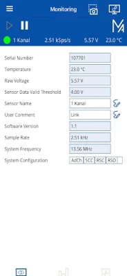 The app can easily be connected (via WLAN) by simply scanning the QR code on the smart interface of the evaluation unit. Afterwards, all relevant data of the measuring system such as temperature or voltage supply can be read out and the measuring system can be easily checked and controlled (health monitoring).