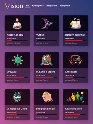 Vision - это мультиплатформенный плеер для воспроизведения m3u плейлистов в общепринятом формате, подходит для воспроизведения аудио, видео, радио, live плейлистов. В основном предназначен для плейлистов интернет телевидения для этого встроена поддержка категорий, программы передач, архива и таймшифта. Приложение не содержит видео и аудио контента, а предназначено для воспроизведения.